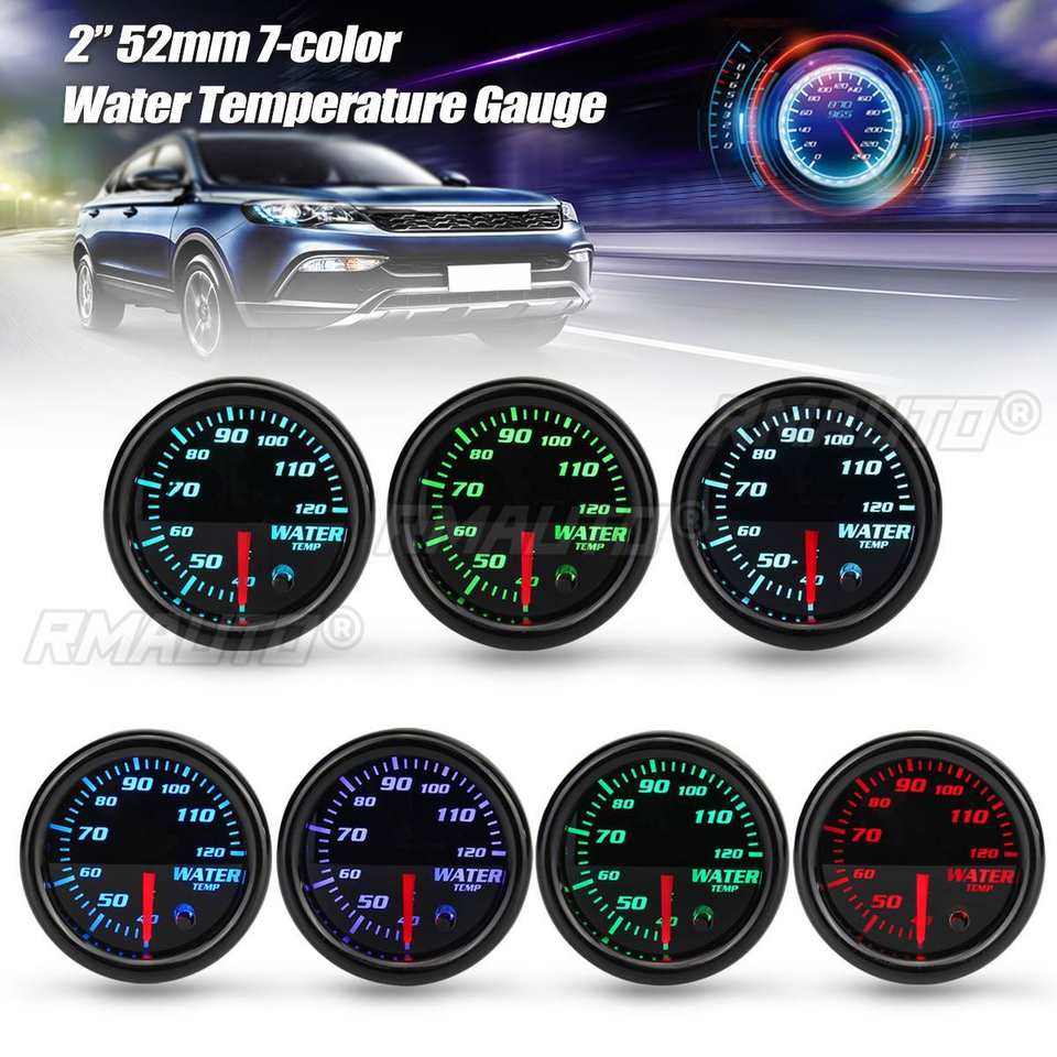 Jauge de température d'eau universelle pour voiture de 2 pouces (52 mm) avec affichage numérique LCD LED 7 couleurs et indicateur de pression turbo