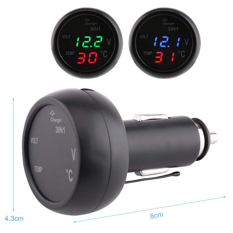 Voltmètre de voiture universel 3 en 1 triple fonction 12V 24V Auto LED Voltmètre numérique Jauge Celsius Temp Meter Chargeur USB