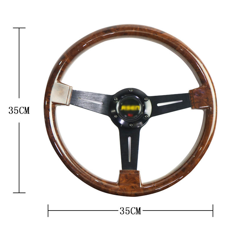 Universal 350mm Leather & PP 3 Spoke Classic Retro Vintage Car Steering Wheel