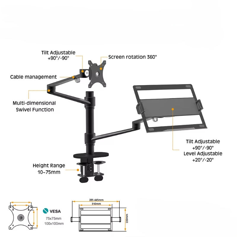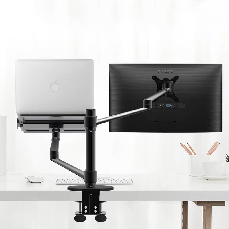Support universel de bras de moniteur double rotatif à 360 degrés Support de moniteur de bureau de haute qualité de marque Plateau pour ordinateur portable