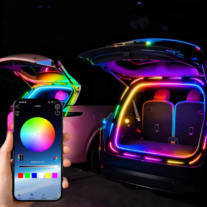 Bande lumineuse LED RGB universelle de 4 m pour coffre, éclairage d'ambiance, décoration, éclairage de coffre arrière