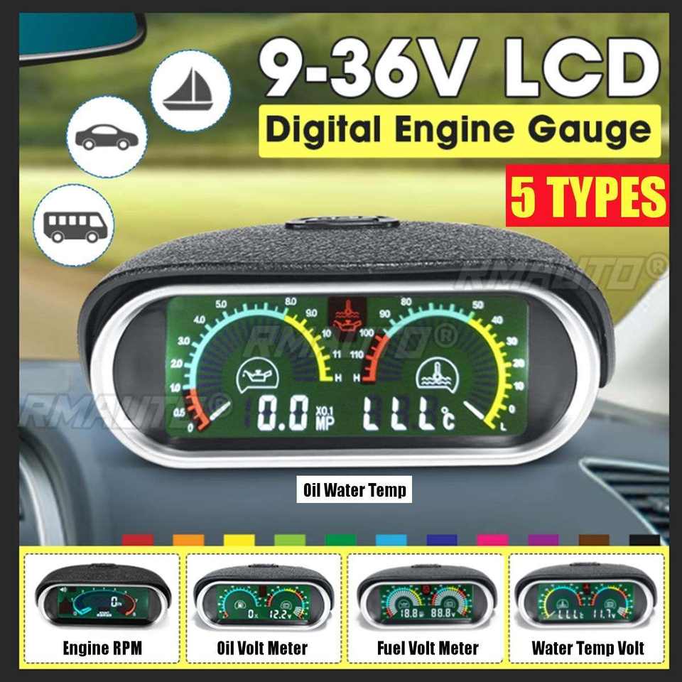Compteur de vitesse numérique LCD universel 2-en-1 pour voiture, 5 types, jauge de température d'huile et d'eau avec capteur 1/8 NPT