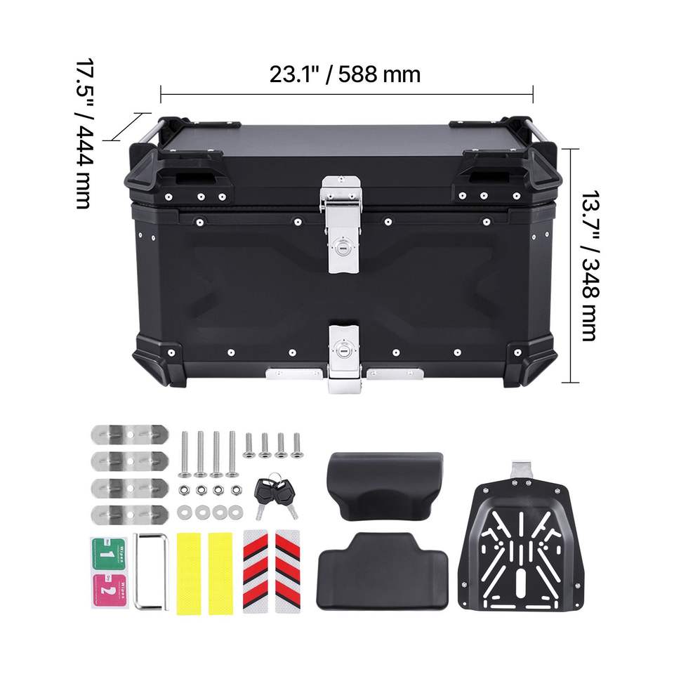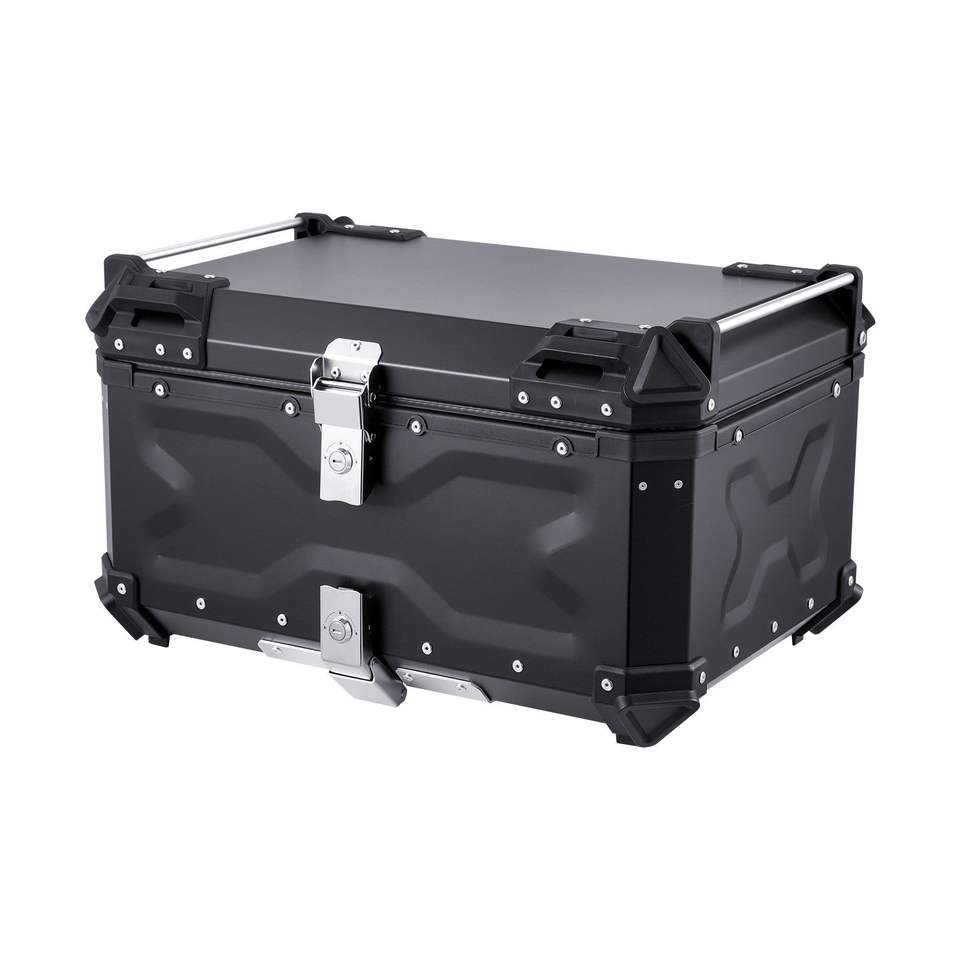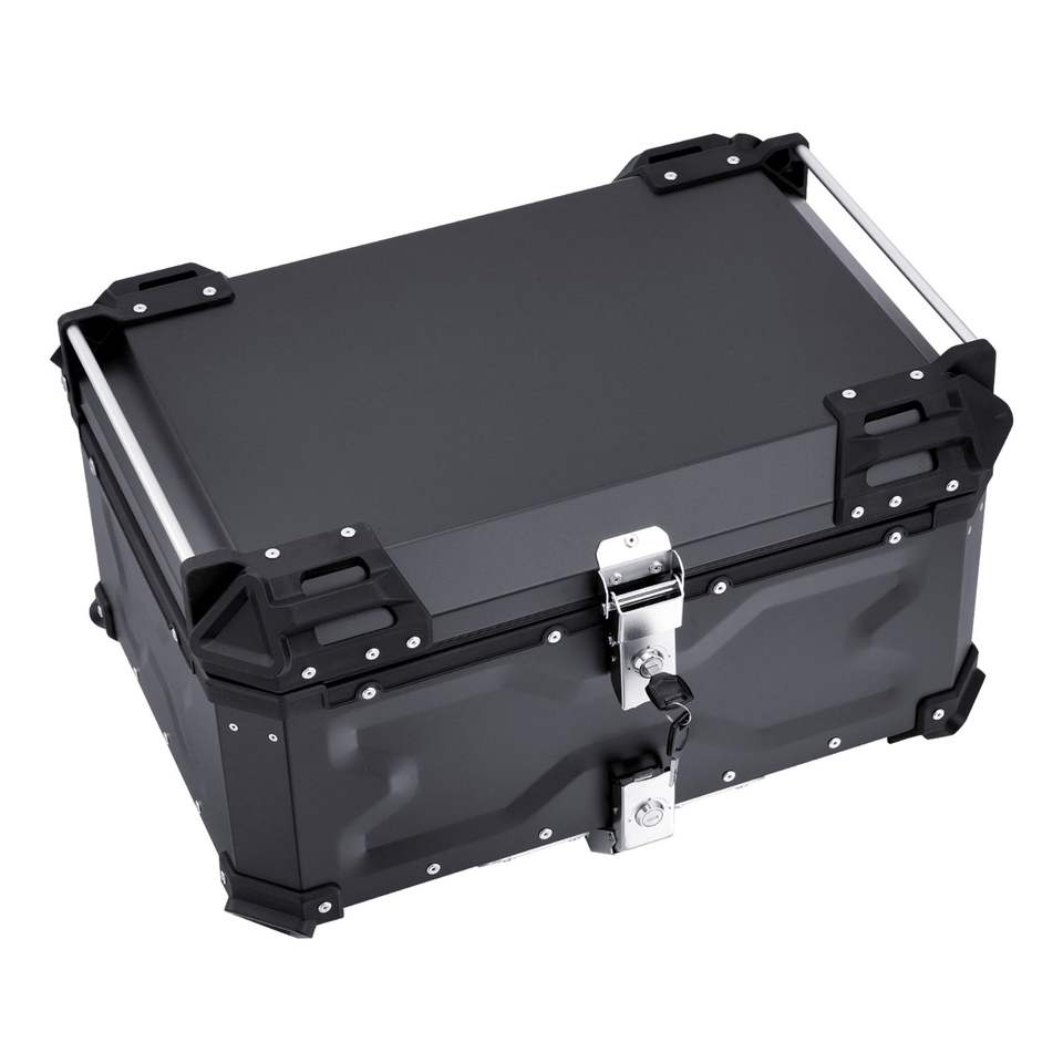 Top Case Moto Universel Noir 65L en Alliage d'Aluminium et Revêtement en Cuir Étanche Détachable