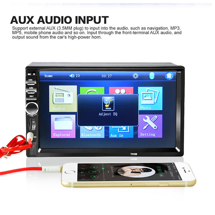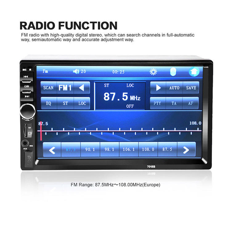 Autoradio universel 2DIN 7 pouces avec écran tactile, Mirror Link/FM/TF/BT/MP5, lecteur DVD et caméra de recul