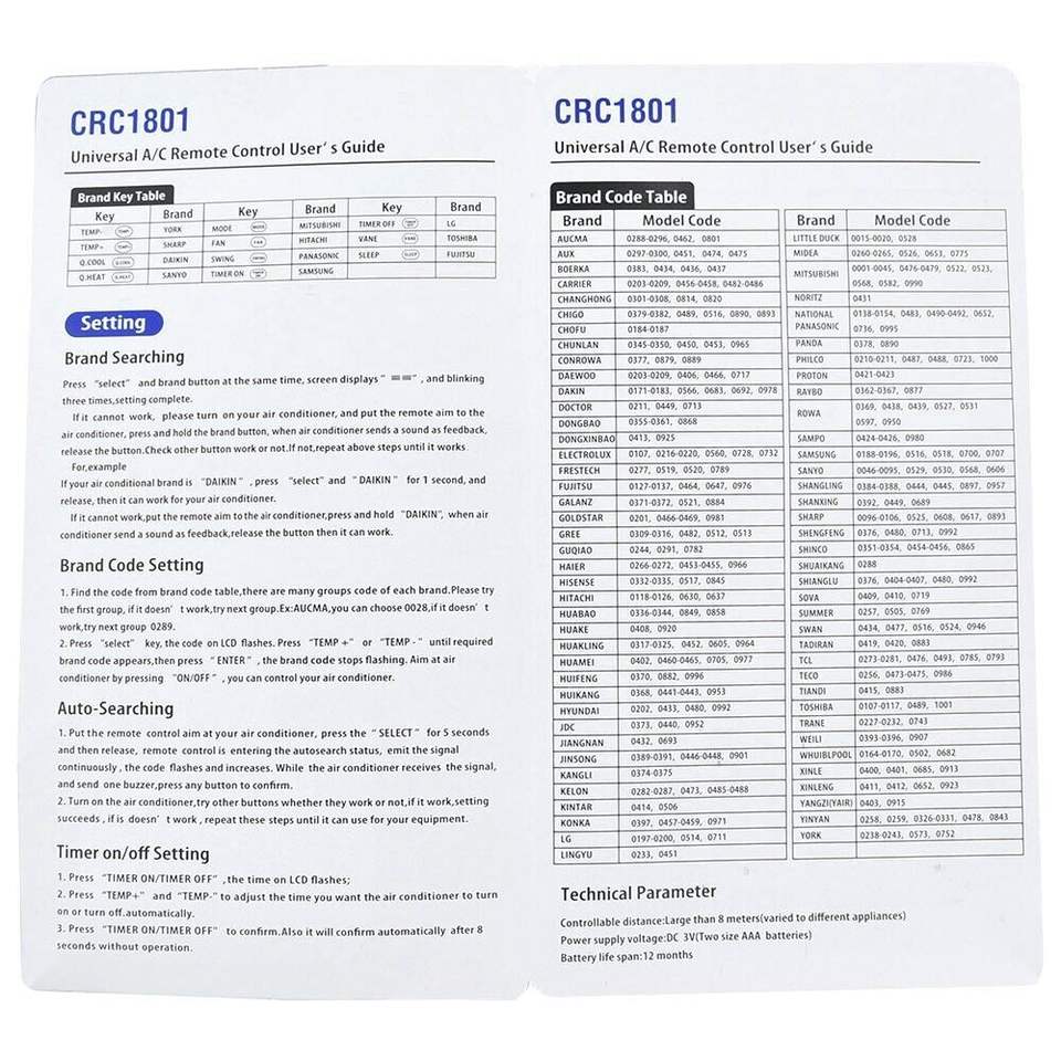 Télécommande universelle AC CRC1801 pour climatiseur AUX L-G Gree Fujitsu Midea Dakin