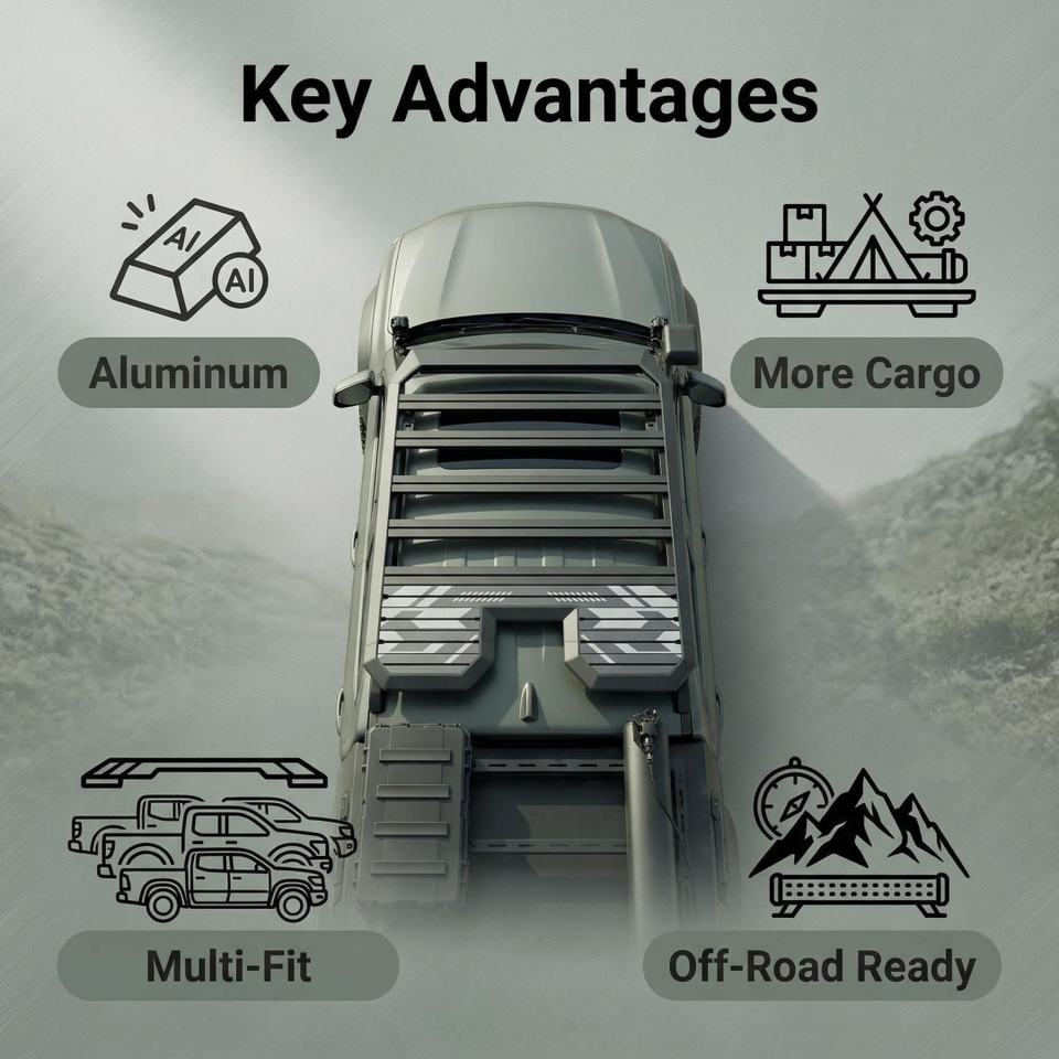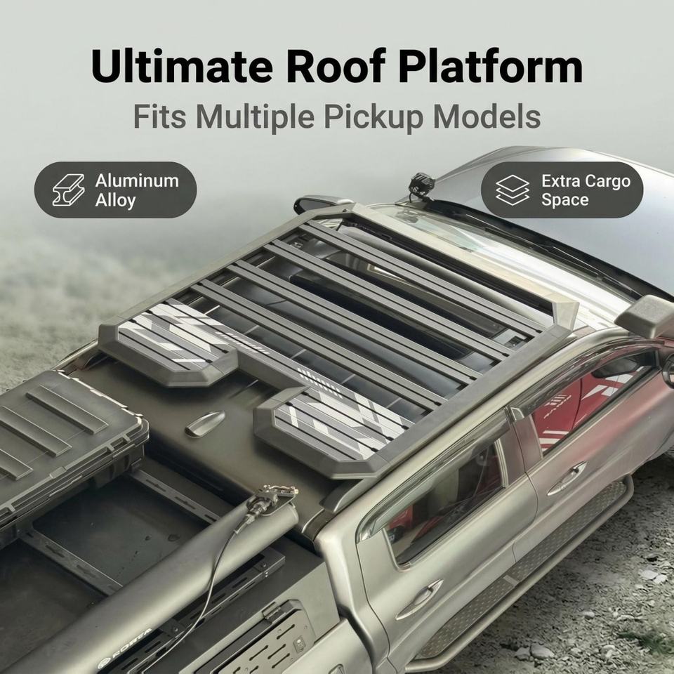 Barre de toit universelle en alliage d'aluminium pour voiture, capacité de charge lourde de 100 kg, plateforme de toit pour camionnette avec installation par boulons, 1,4 m x 1,25 m