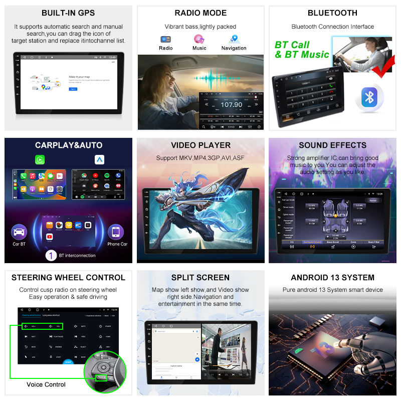 GPS, Stéréo, Amplificateur, DSP, CarPlay, Lien de miroir, Android auto, Image dans l'image, Volant de voiture de ContrôleFonction