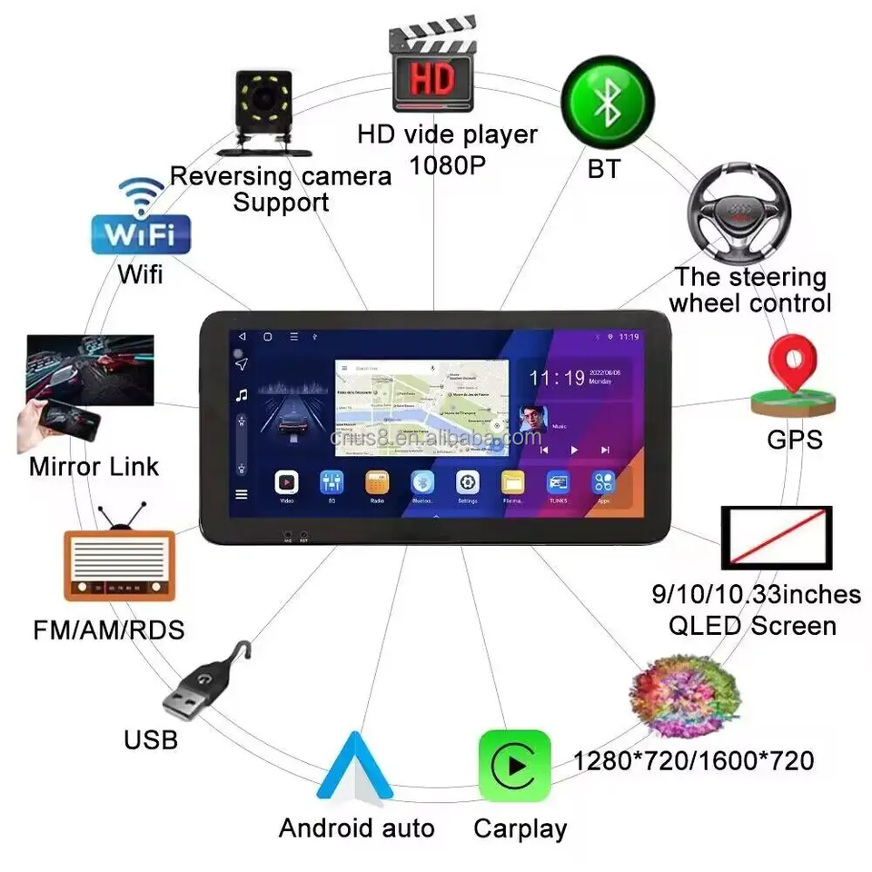 GPS, Stéréo, SANS MAINS, TPMS, OBD2, DSP, CarPlay, DVB +, Lien de miroir, Android auto, Image dans l'image, Écran partagé, Volant de voiture de ContrôleFonction