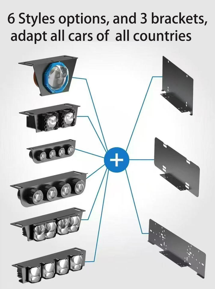 Kit d'éclairage de plaque d'immatriculation universel Bi-LED avec supports de montage, ensemble complet d'éclairage de plaque d'immatriculation de pare-chocs avant
