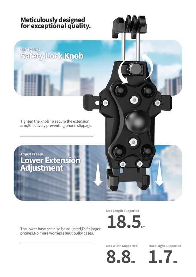 Four-corner shock-absorbing design, Stainless steel extension rods, Expansion connection mount, Lower seat extension deviceFeature