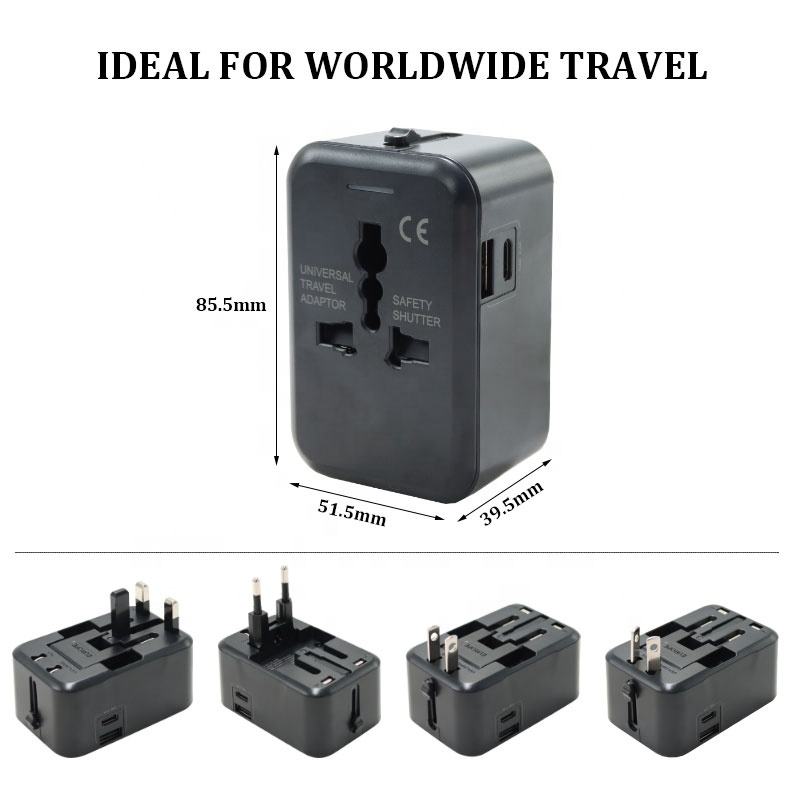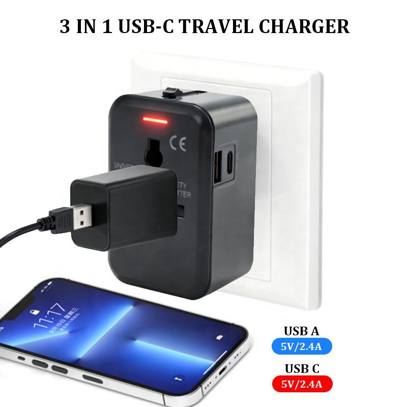 Chargeurs universels, adaptateur de voyage, chargeur mural pour téléphone portable avec USB et Type-C