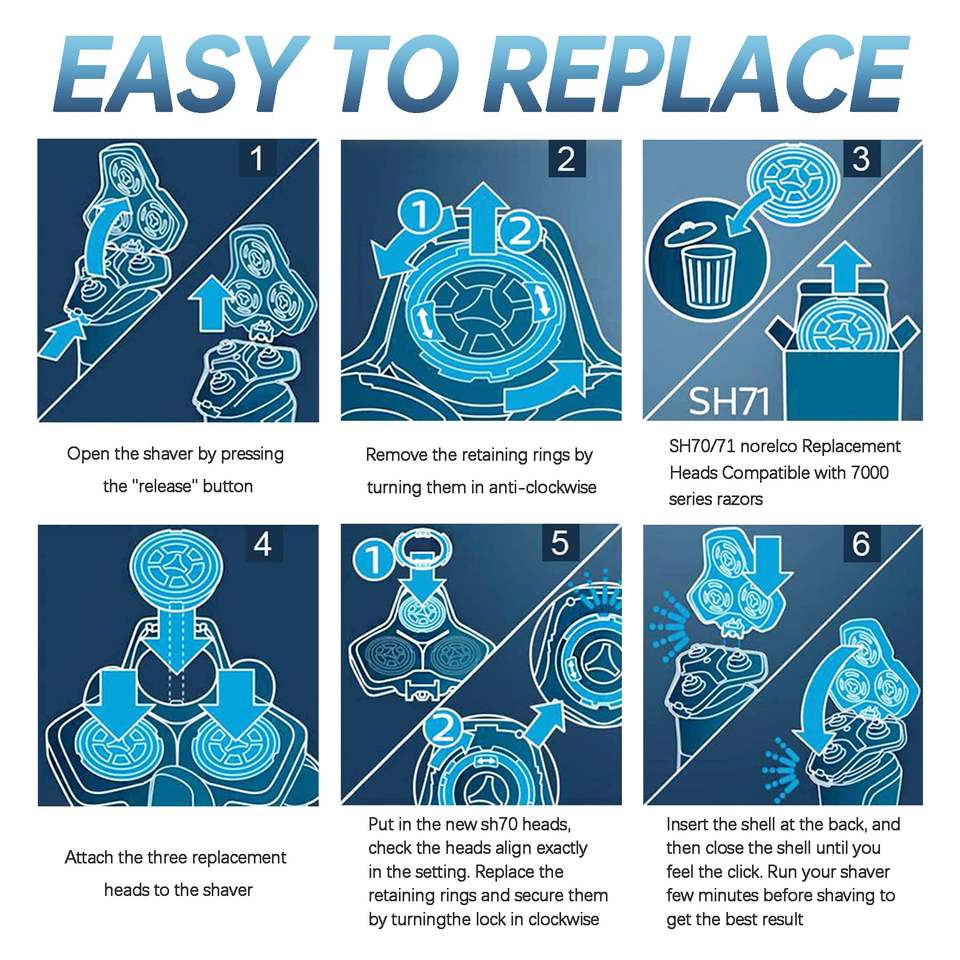 Tête de rechange universelle pour rasoir électrique homme, à lame simple ou triple, lavable, interface en allemand, pour le visage et le corps