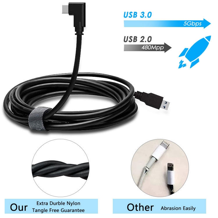 Charge universelle plus rapide 20 pieds 3m 5m Usb à type-c Vr câble 5gbps Usb 3.1 Gen2 pour Oculus Quest 2 Link Cable