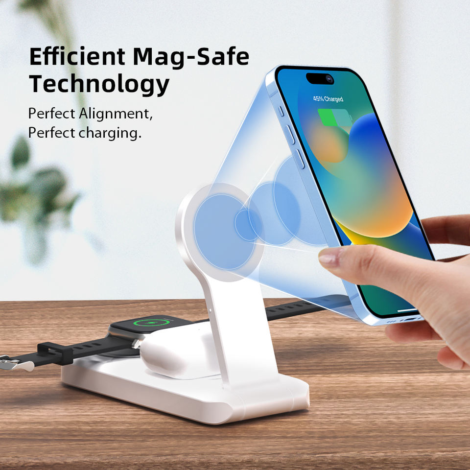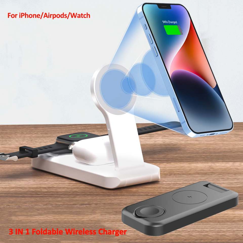 Chargeur magnétique sans fil pliable 3 en 1 pour téléphone/iwatch/écouteurs