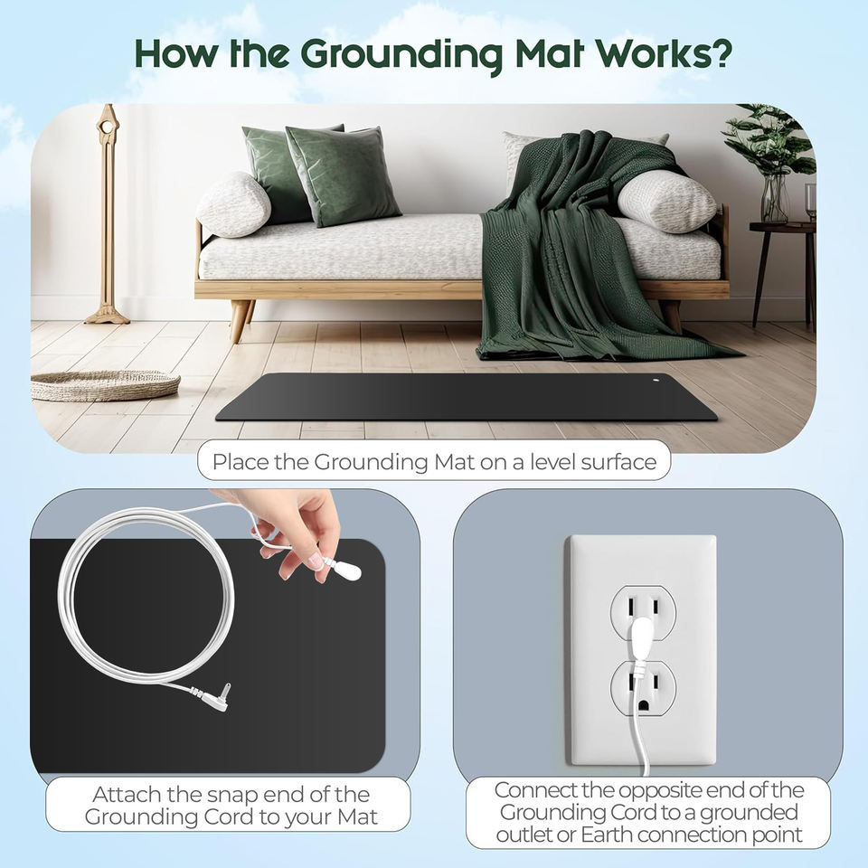 Tapis de mise à la terre universel avec 1 cordon droit, tapis de protection pour une meilleure pratique du yoga, du travail et du sommeil
