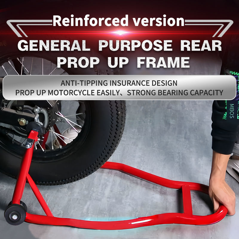Support de réparation universel pliable pour moto, pour levage et stockage de la roue arrière, avec glissières de repositionnement et cadre de levage