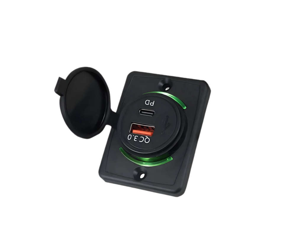 Chargeur de voiture/camion universel QC3.0 USB 2 ports 20W à charge rapide 12-24V haute puissance avec ports Type-C + Type-A résistant aux flammes