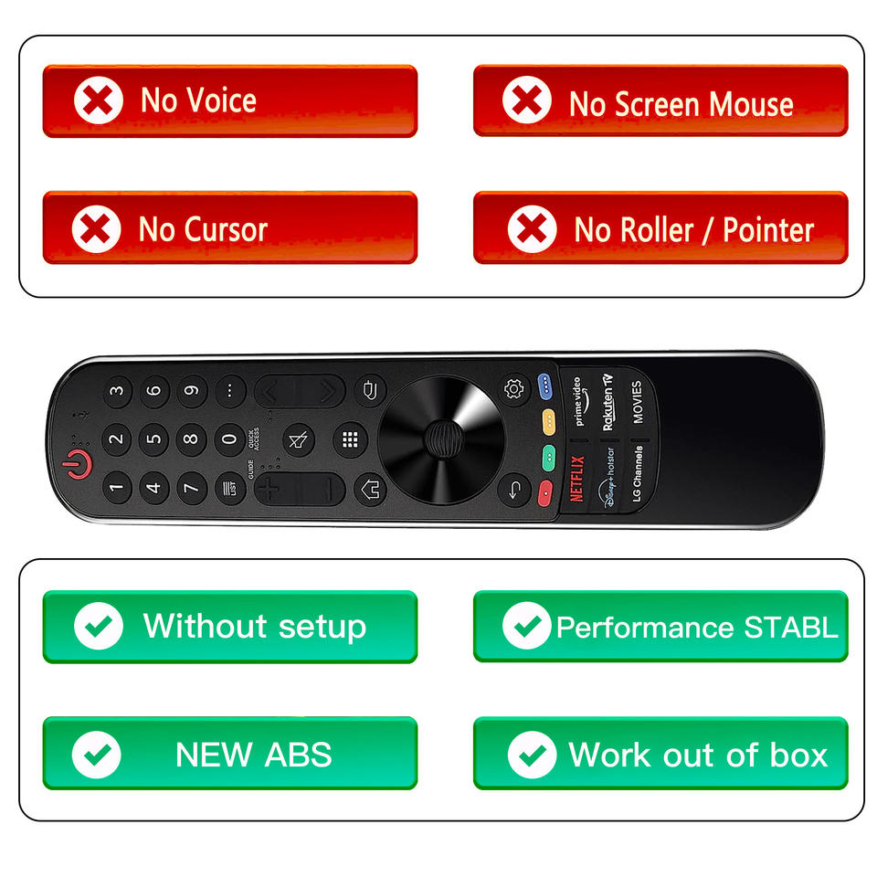 Télécommande universelle de remplacement pour LG MR18BA MR19BA MR20GA MR21GA MR22GN MR23GA (pas de fonction vocale, pas de fonction de pointeur)