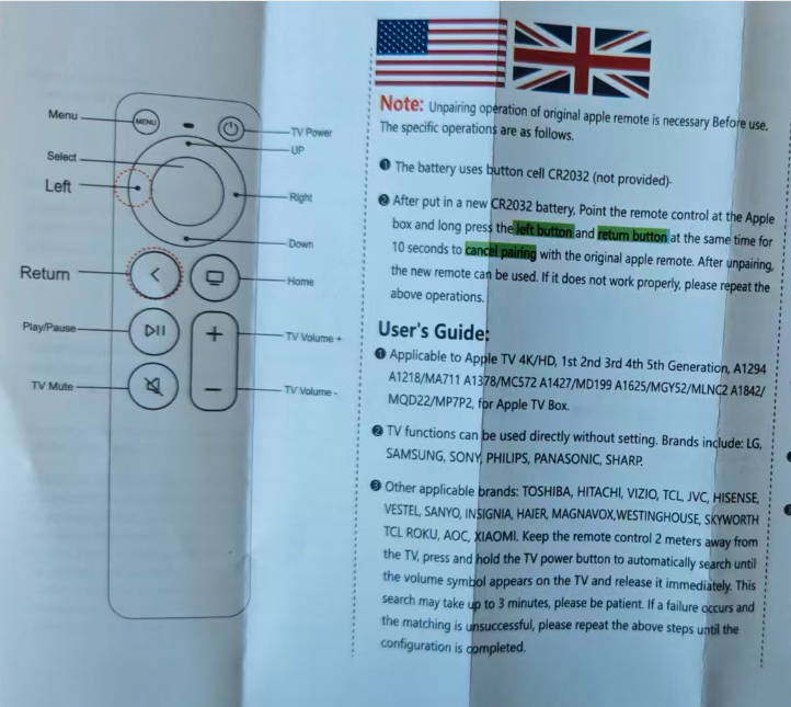 Télécommande universelle pour Apple TV et Apple TV Box, également compatible avec LG, Samsung, Sony, Panasonic, Philips sans configuration