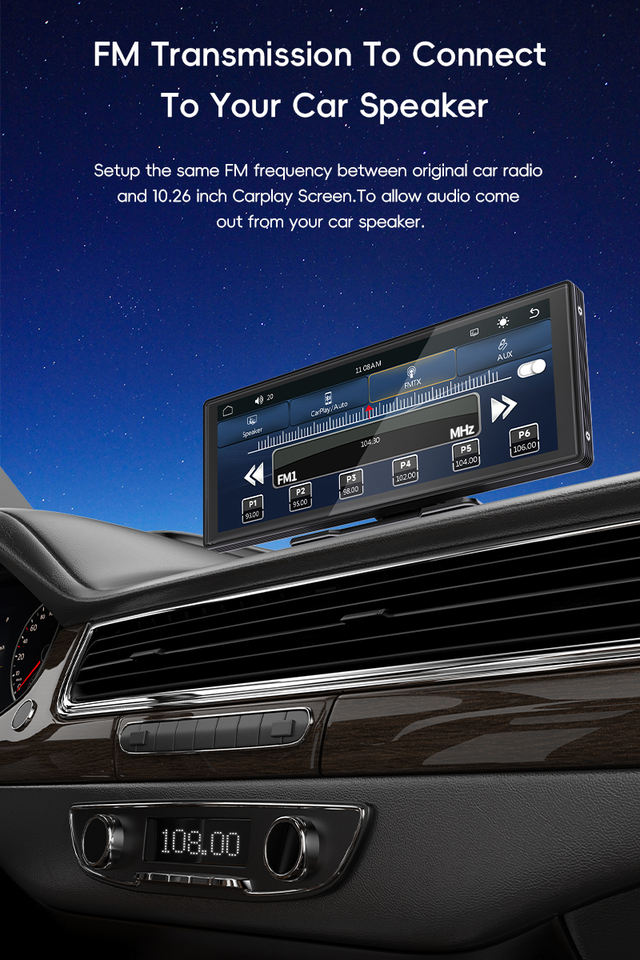 Nom du produit:Écran CarPlay sans fil portable IPS Android Auto de 10,26 pouces
