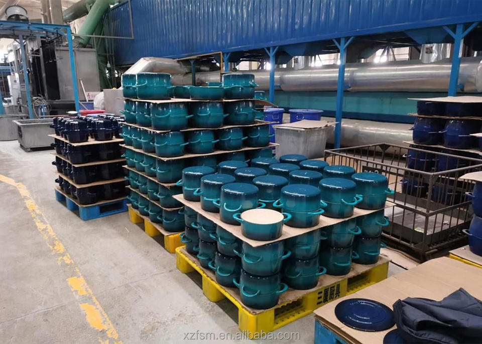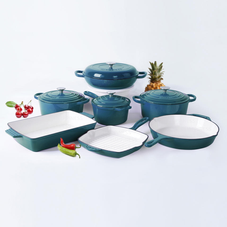 Ensemble de casseroles en fonte émaillée de style universel, 7 pièces, cuisine à la maison à l'ancienne, casserole antiadhésive, poêle à griller, plateau à griller, batterie de cuisine