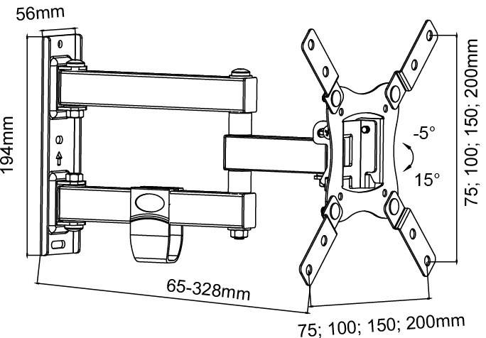 Support de montage universel pivotant pour téléviseurs noirs de 32 à 43 pouces avec capacité de charge de 23 kg, acier laminé à froid, VESA 200x200
