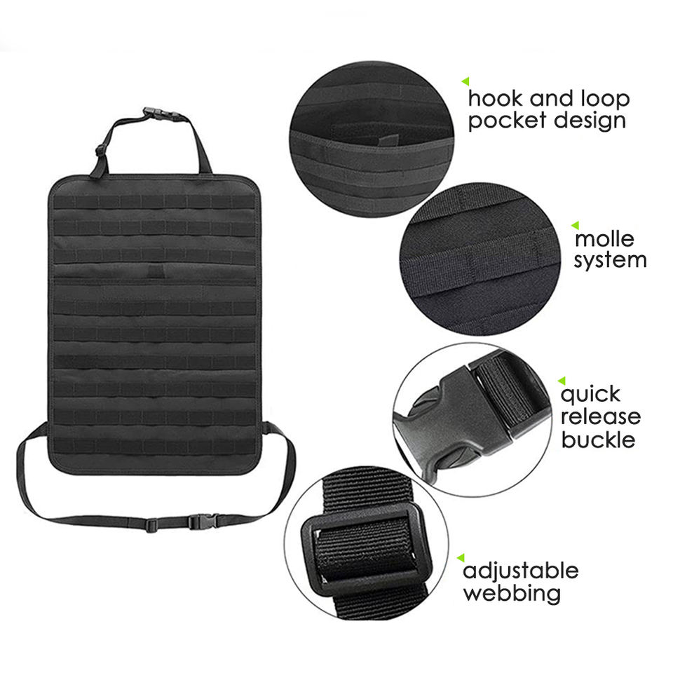 Panneau organisateur universel tactique MOLLE pour dossier de siège avec pochettes, sac de rangement multi-usages pour outils de véhicule, organisateur de siège de voiture