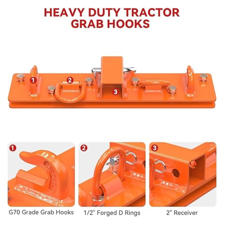 Crochets universels pour godets de tracteur, récepteur de 2 pouces pour godets de tracteur avec plaque arrière en acier