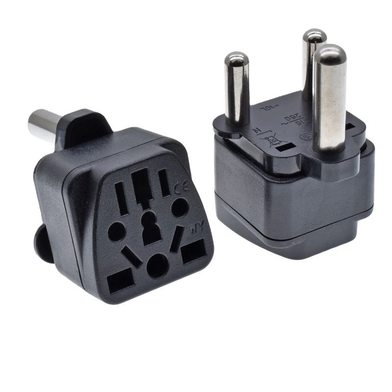 Adaptateur de voyage universel pour ordinateur portable et appareil photo, 2 broches/3 broches, Type-M, 16A 250V, ABS+Cuivre, certifié CE ROHS, EU/US/UK/AU/Inde/Sri/L