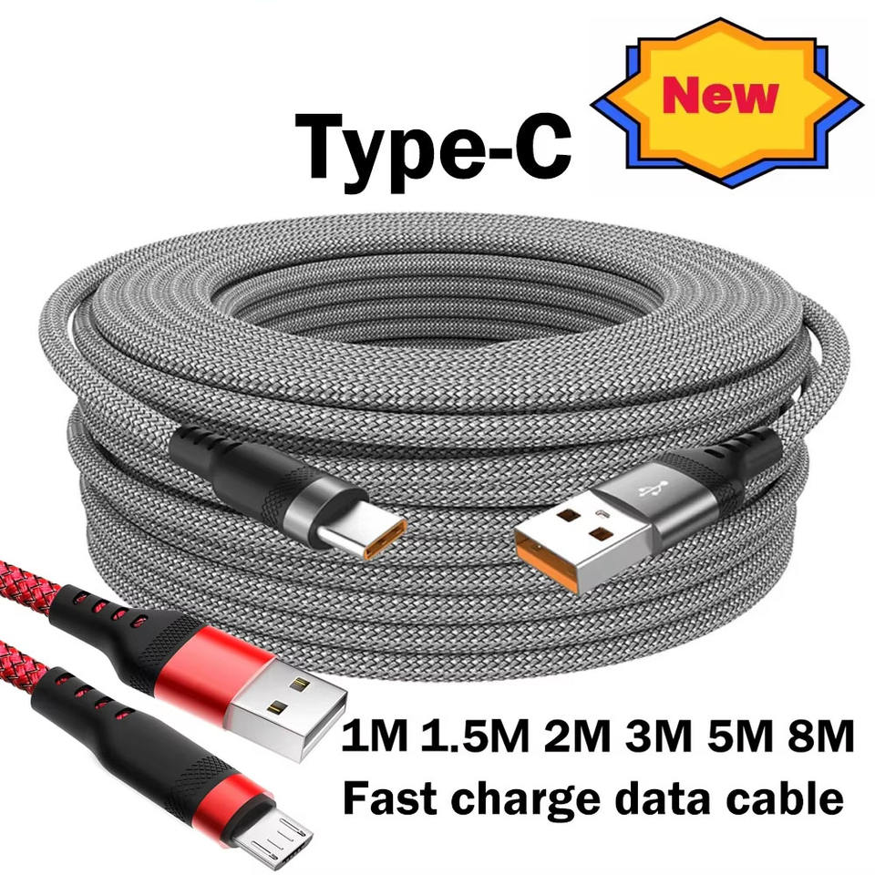 Câble USB universel type C 6A Câble de données à charge rapide 1m 1.5m 3m 5m 8m Câble d'extension micro pour Samsung Xiaomi PS4/5