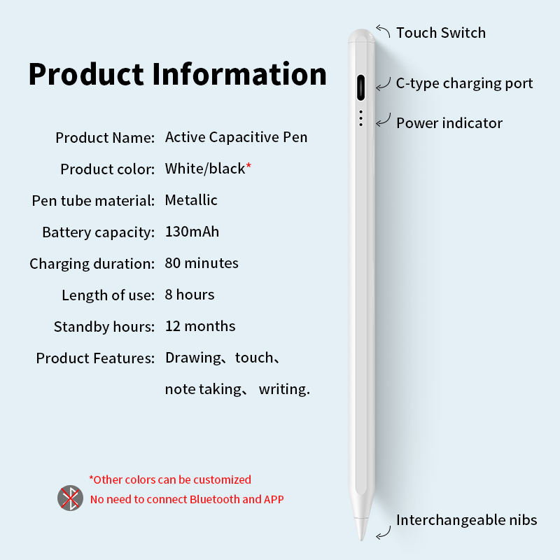 Attraction magnétique, technologie de détection active, pointe remplaçable, Rejet de la paume, détection de l'angle d'inclinaisonfonctionnalité