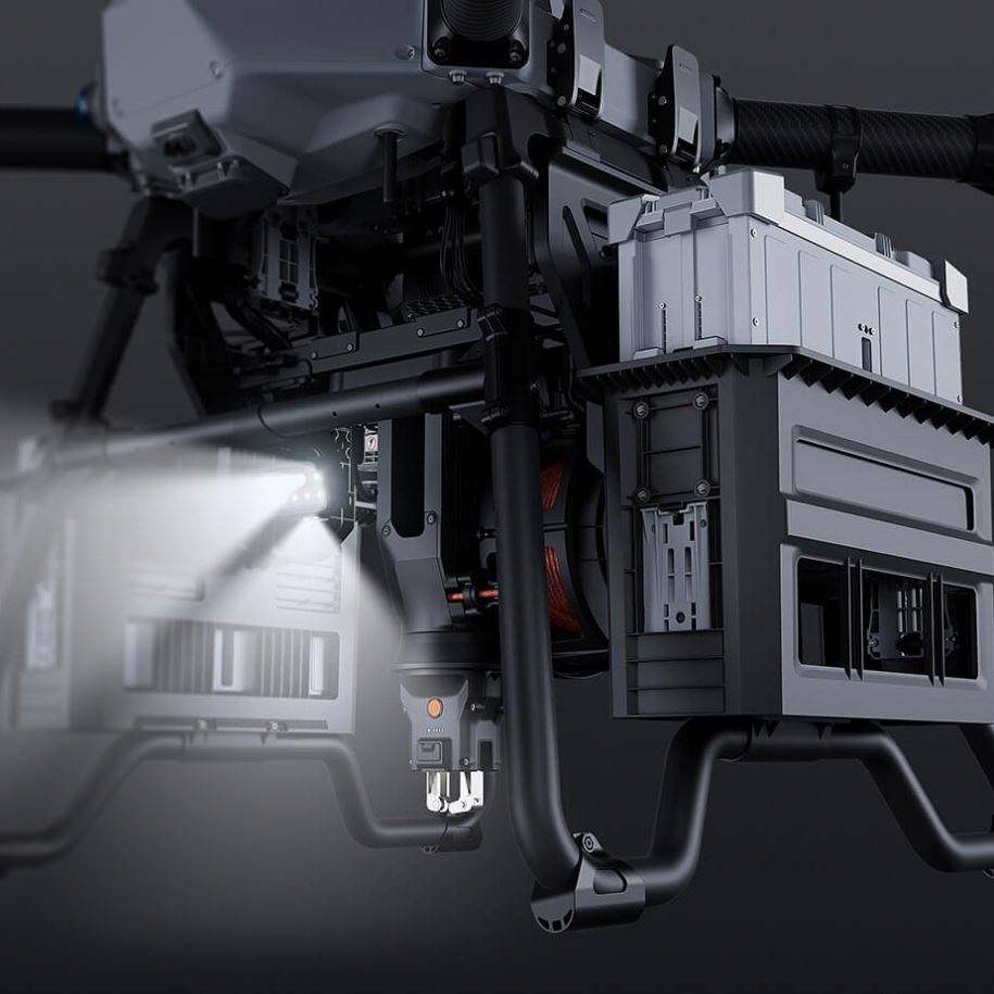 Drone de livraison universel Flycart 100 avec charge utile lourde de 80 kg et système de grue vide, incluant un parachute FC100 UAV