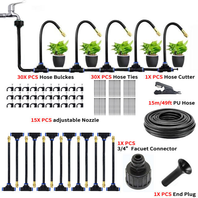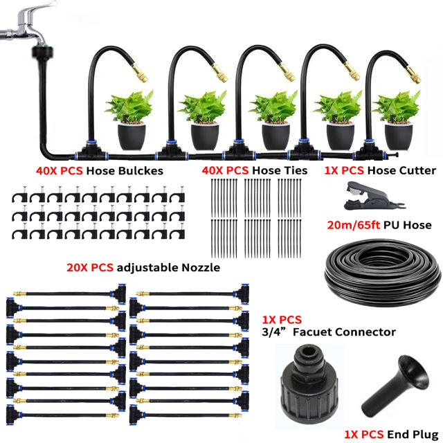 Kit d'arrosage universel 20L sans électricité en ABS/PE avec micro-pulvérisation 3/4 po et buse réglable pour l'irrigation des fleurs et des serres