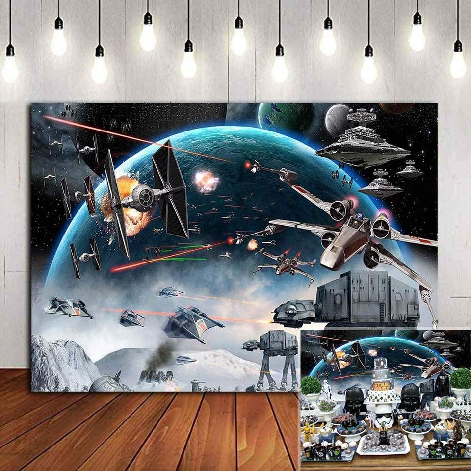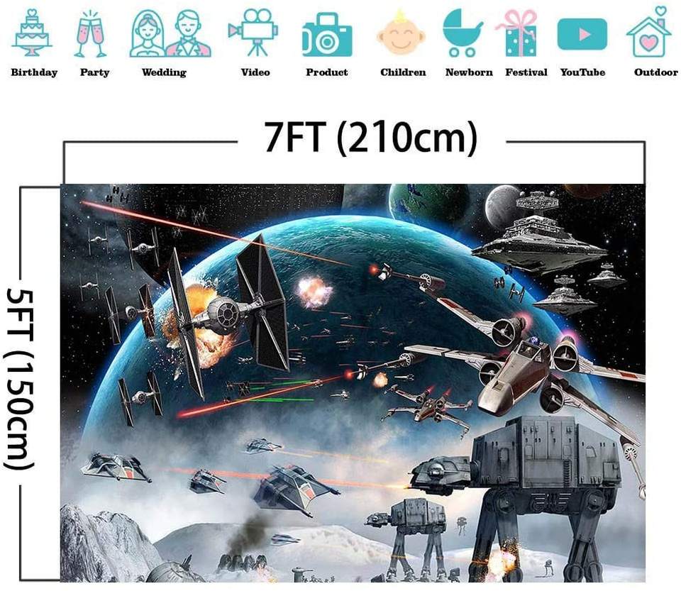 Toile de fond de photographie de science-fiction Universe Wars, vinyle 7x5 pieds, fond photo galaxie étoile noire, fête d'anniversaire pour enfants garçons