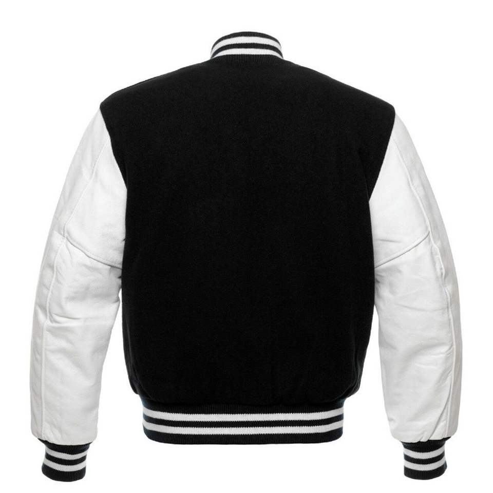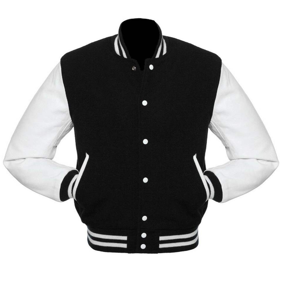 University Letterman Varsity Jacket Vestes en laine noire Manches en cuir véritable Blouson bombardier blanc CollegeBaseballjacket pour hommes