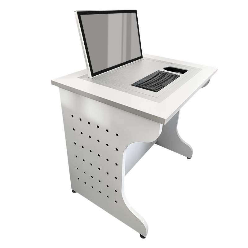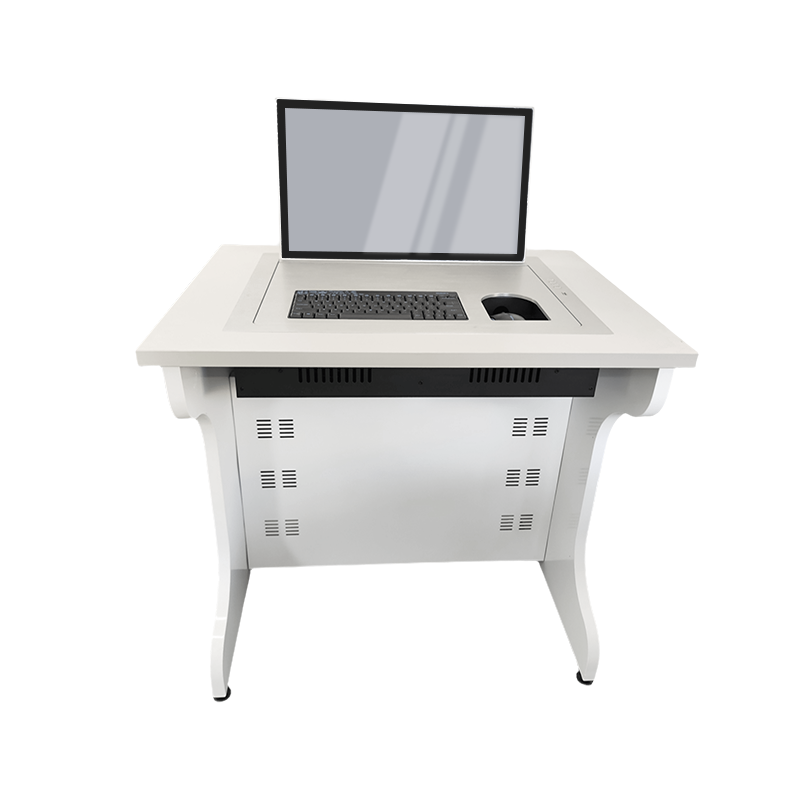 Équipement de classe pour étudiants universitaires Bureau caché Table de moniteur LCD pour ordinateur rabattable motorisé pour salle d'ordinateurs scolaires
