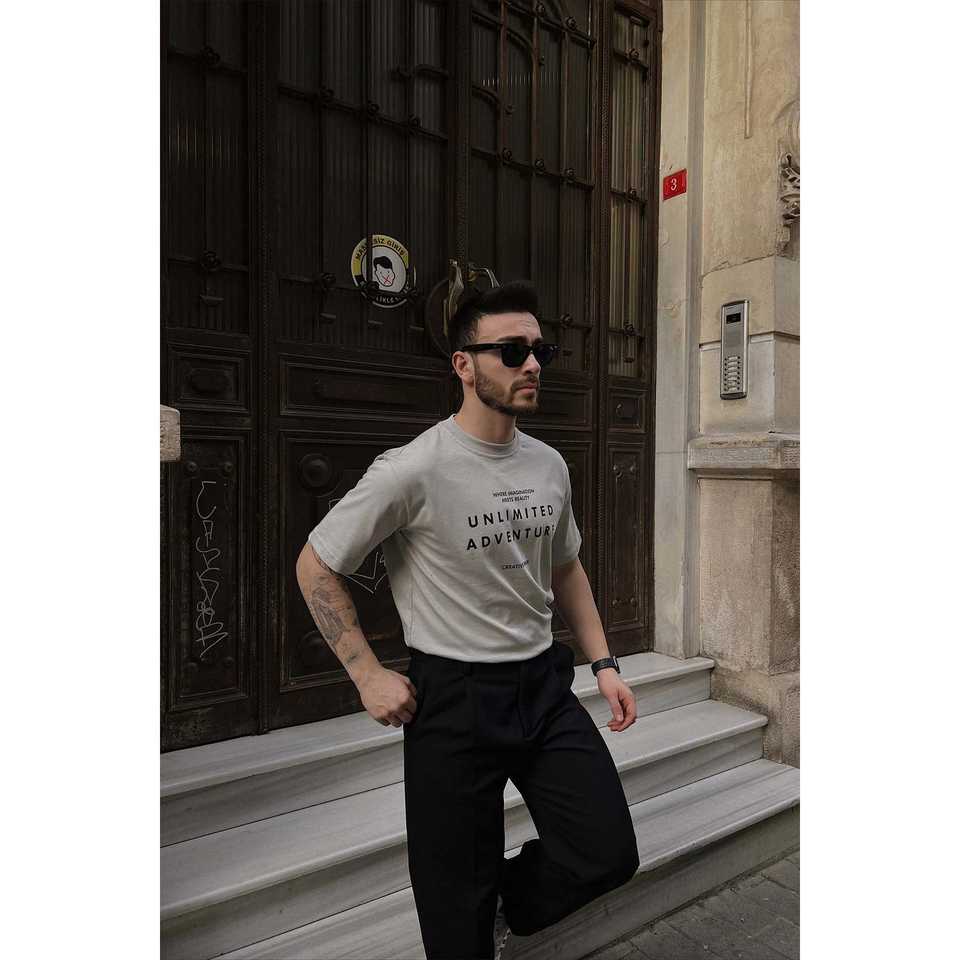 T-shirt imprimé « Aventure Illimitée » en tissu 240 grammes, style Hip Hop, respirant, coupe courte, logo uni sérigraphié