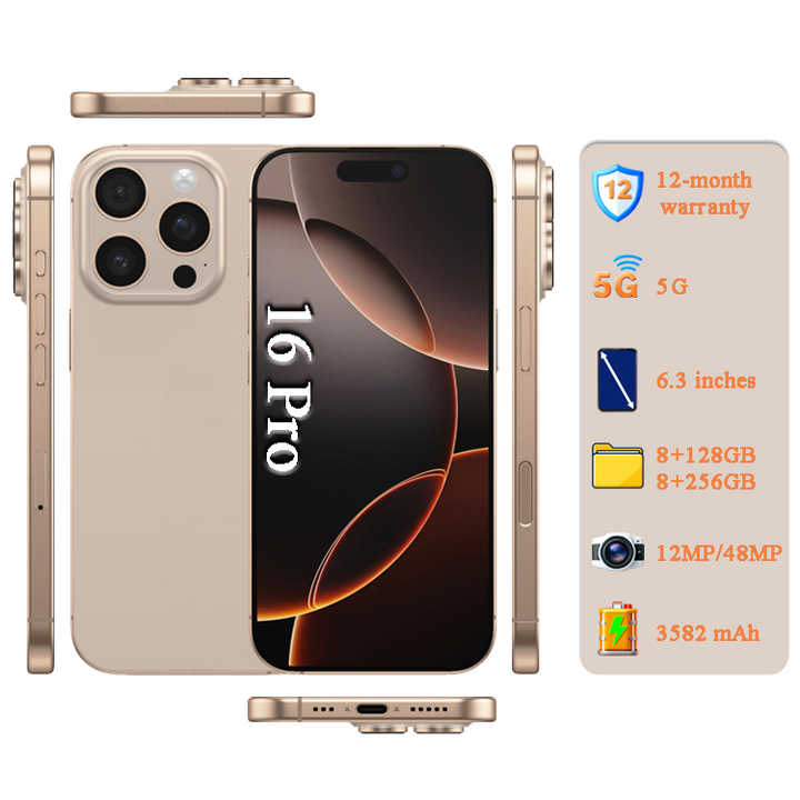 Téléphones mobiles originaux débloqués 16 Pro 128 Go [Appareil photo 48 MP] [E-SIM] Version mondiale Smartphone 5G Qualité A+