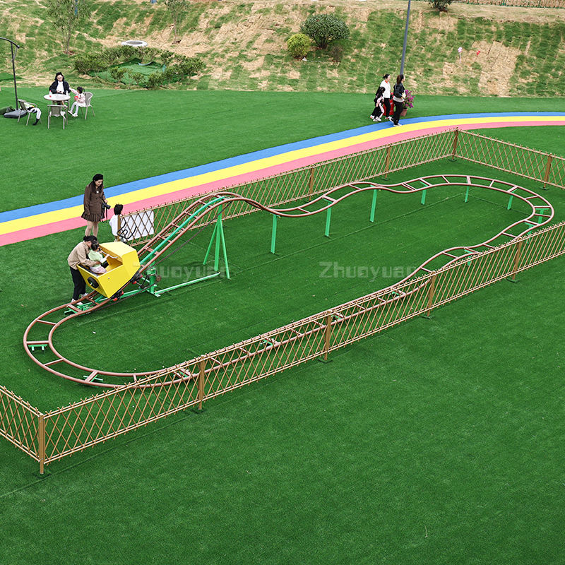 Montagnes russes de jardin sans moteur, équipement de parc d'attractions en plein air pour enfants, montagnes russes à pédales humaines