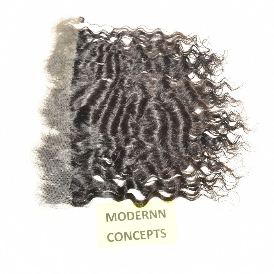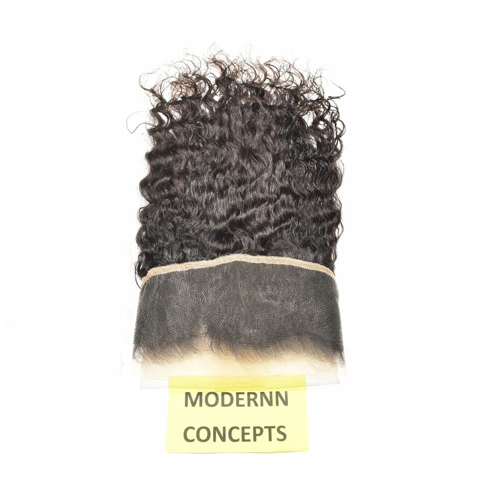 Cuticule non traitée alignée naturelle soyeuse 13*4 HD frontale ondulée couleur noire vierge brute indienne Temple Extensions de cheveux humains