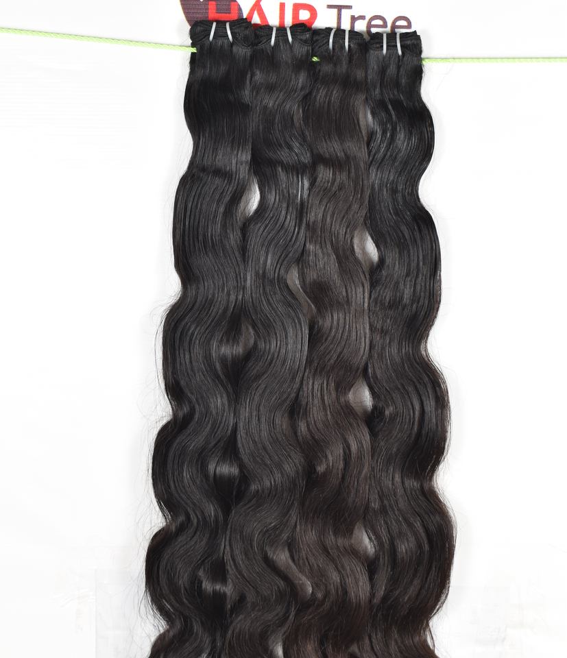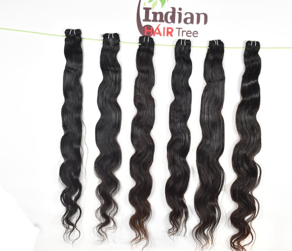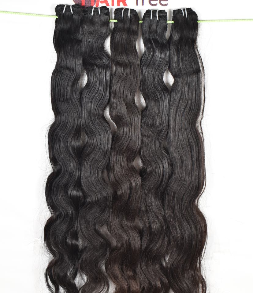 Extensions de cheveux humains vierges indiens bruts non traités, cuticules alignées, naturelles, ondulées, couleur noire, pas chères, par Export
