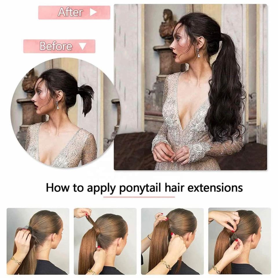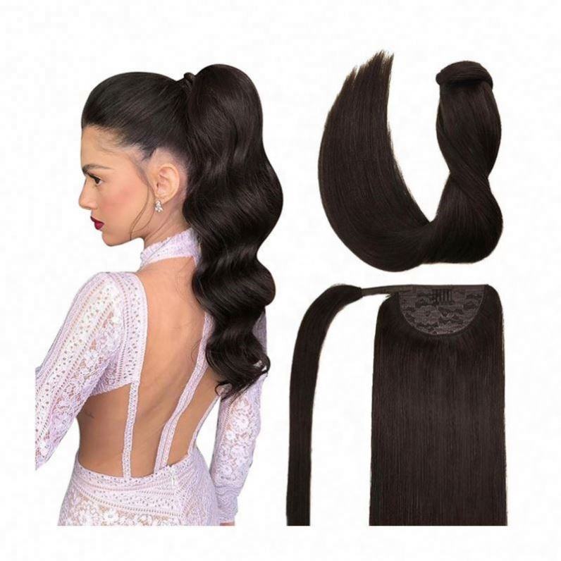 Nom du produit:Extension de cheveux humains à clipser, queue de cheval enveloppante