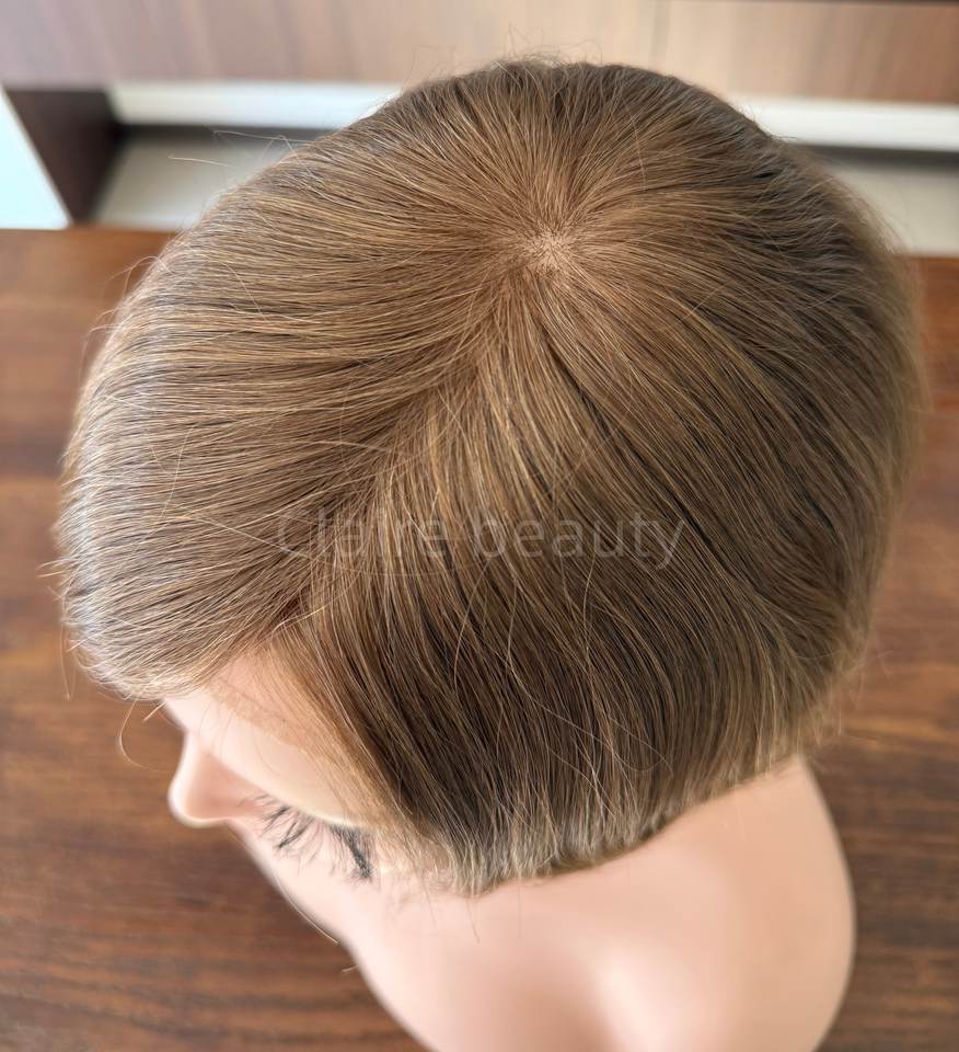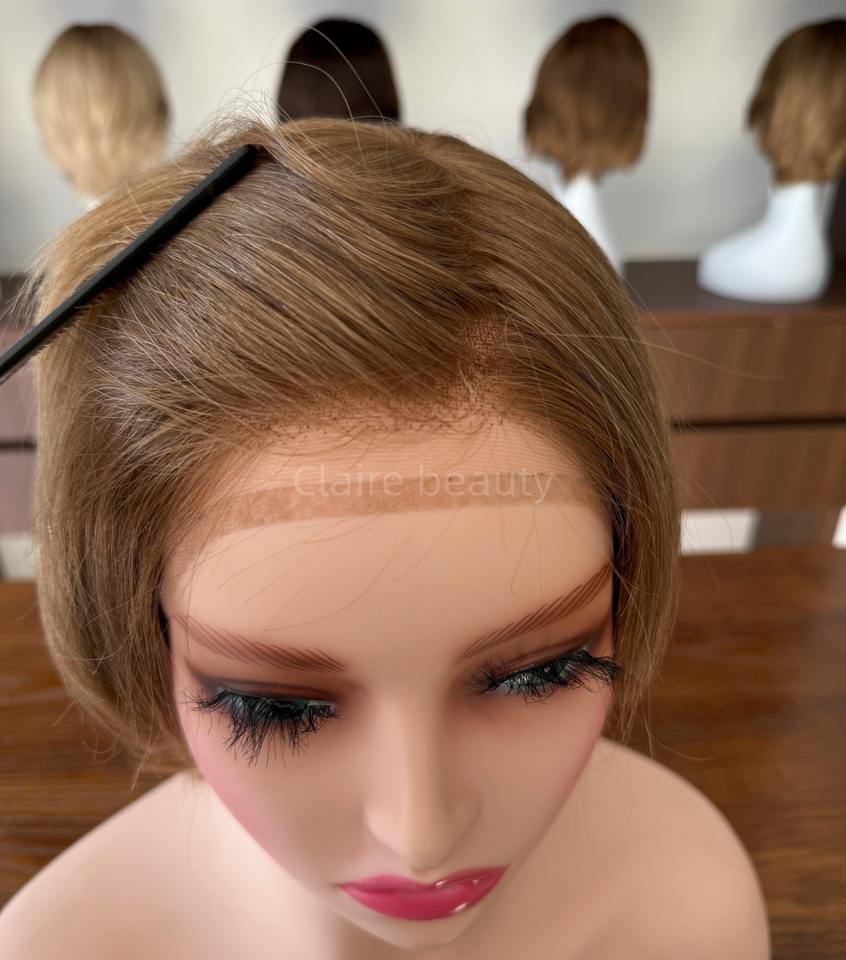 Perruque médicale en cheveux naturels non traités, entièrement nouée à la main, avec dessus en soie et dentelle frontale, pour patients atteints de cancer