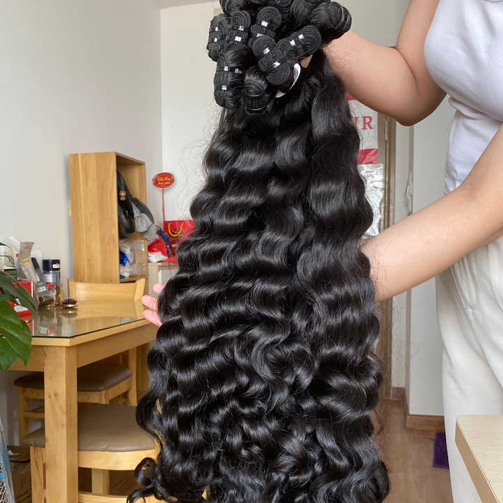 Extensions de cheveux alignés par cuticules vierges vietnamiennes non transformées Double trame lâche vague profonde cheveux humains bruts vague naturelle