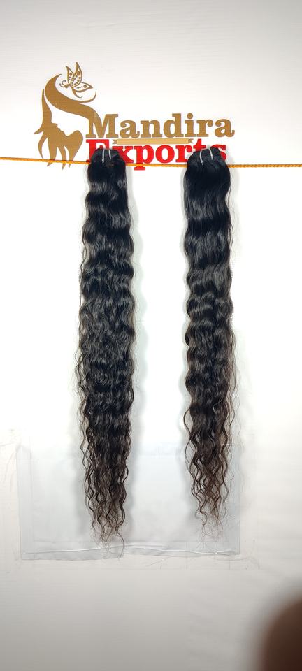 Vente en gros d'extensions de cheveux humains non traités naturels de couleur noire tissage bouclés crépus jeune femme vierges faisceaux temple indien