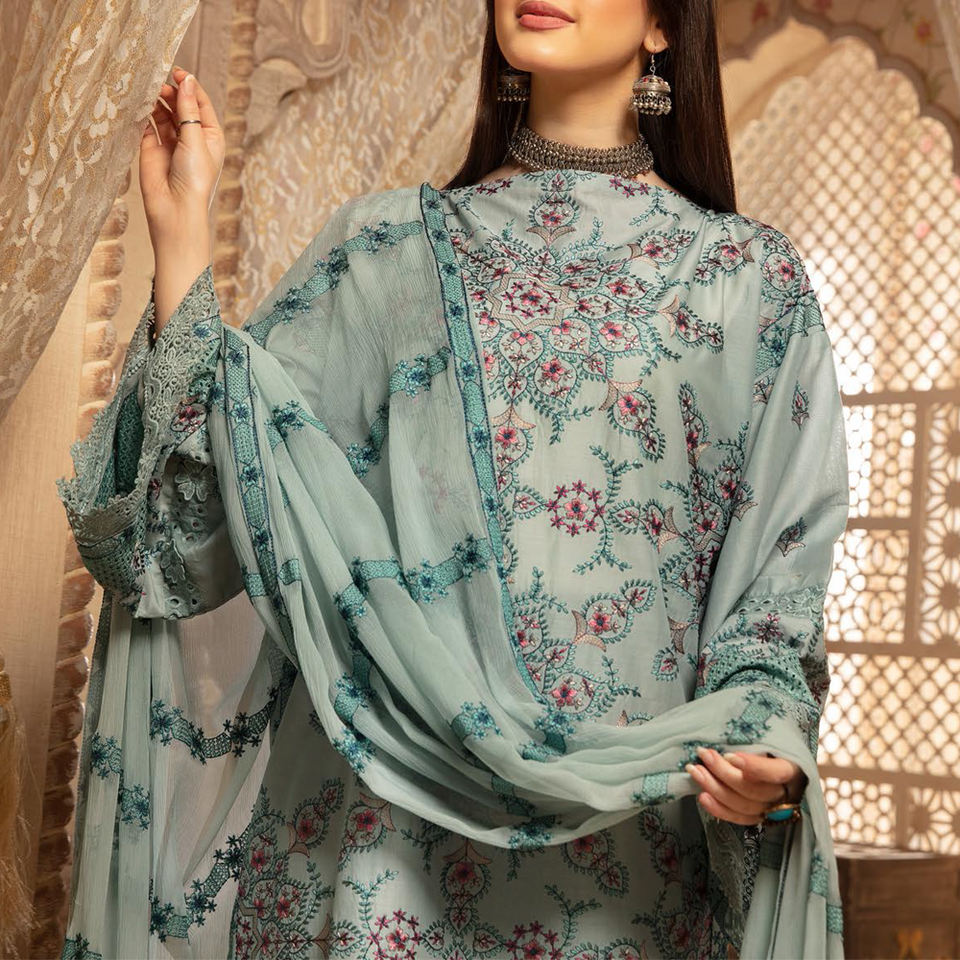 Costume brodé non cousu pour femmes costumes pakistanais élégants pour femmes haute qualité dames pelouse 3 pièces chemise Dupatta pantalon