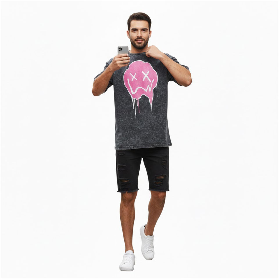 T-shirt unisexe surdimensionné en feutre personnalisé avec impression sérigraphique, style vintage délavé, streetwear, 100% coton respirant, noir délavé à l'acide