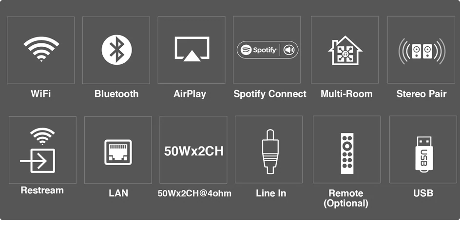 Protocole de streaming:Spotify Connect,Airplay,DLNA,APP