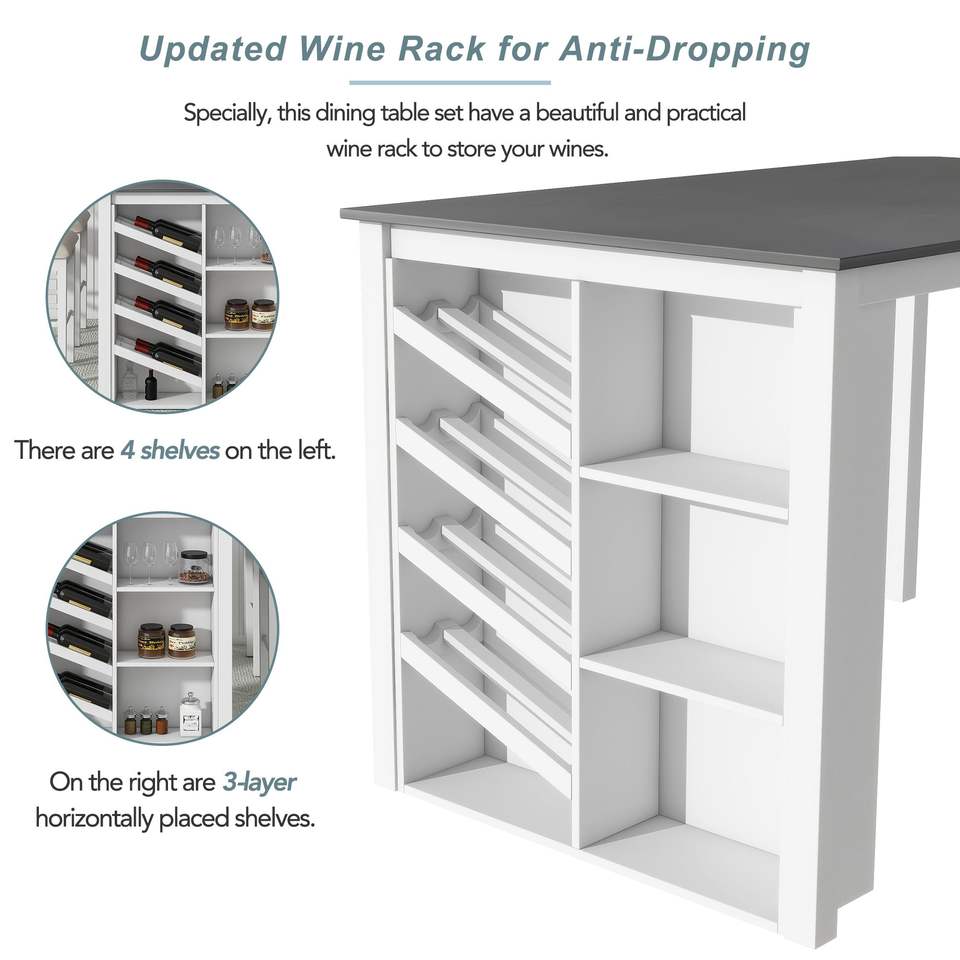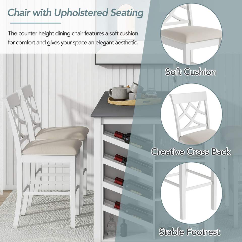 Ensemble de salle à manger 5 pièces en bois massif mis à jour, table haute de 59*35,4 pouces avec porte-bouteilles incurvé et 4 chaises rembourrées