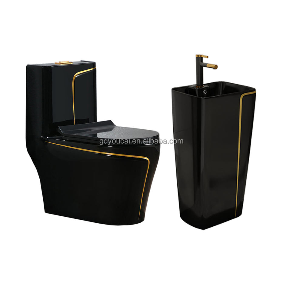 Amélioration de la salle de bain Toilette verte à bord doré Combinaison de lavabo de toilette Nigeria Afrique du Sud Prix compétitif de toilette 1 pièce